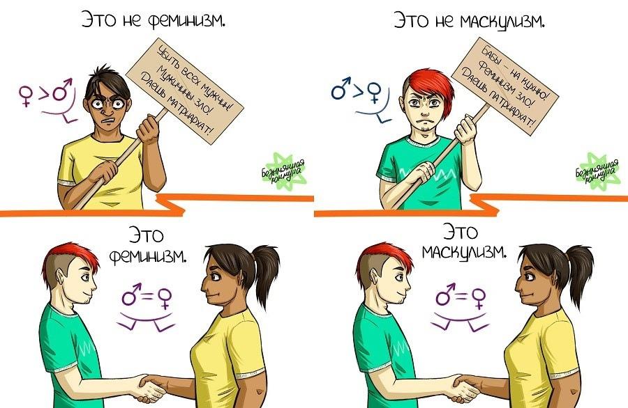 И вроде бы движение оправдано, и надо поставить точку в вопросе, что «мужских прав не существуют, у них есть лишь привилегии, а всё остальное — это отголосок патриархата», но нет: мужчины так же испытывают на себе сексизм (и чаще со стороны женщин), у них так же существует проблема алиментного рабства, проблемы на предприятии, гендерного характера (розовый — девочкам, синий мальчикам; мальчики должны быть мужественными) и другие. Считается, что в некоторой степени здесь замешан «матриархат» или «патриархат с лицом матриархата».
